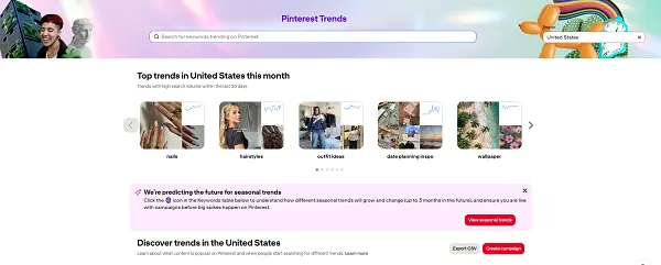 Pinterest càng ngày càng được dùng như công cụ khám phá sản phẩm & ý tưởng mua sắm. Pinterest Trends cho bạn xem các “Pins trending” theo từ khoá, chủ đề. Giúp bạn đưa sản phẩm vào content đúng lúc khách đang tìm nguyên mẫu hoặc phong cách.