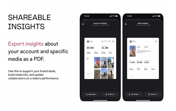 Instagram đang thử nghiệm một tính năng mới giúp creator dễ dàng chia sẻ dữ liệu phân tích hiệu suất nội dung của họ với đối tác, thương hiệu hoặc công chúng. Thay vì chỉ xem dữ liệu riêng trong Insights, creator sẽ có tùy chọn xuất bản các số liệu chọn lọc để thể hiện công việc và kết quả nội dung của mình.