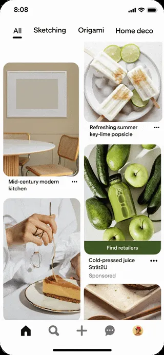 - Khi người dùng xem một Pin có sản phẩm, họ sẽ thấy nút “Find retailers” (Tìm nhà bán) bên dưới Pin. Nhấn vào đó, sẽ hiển thị danh sách các nhà bán hàng khác nhau có sản phẩm tương tự đang có hàng.